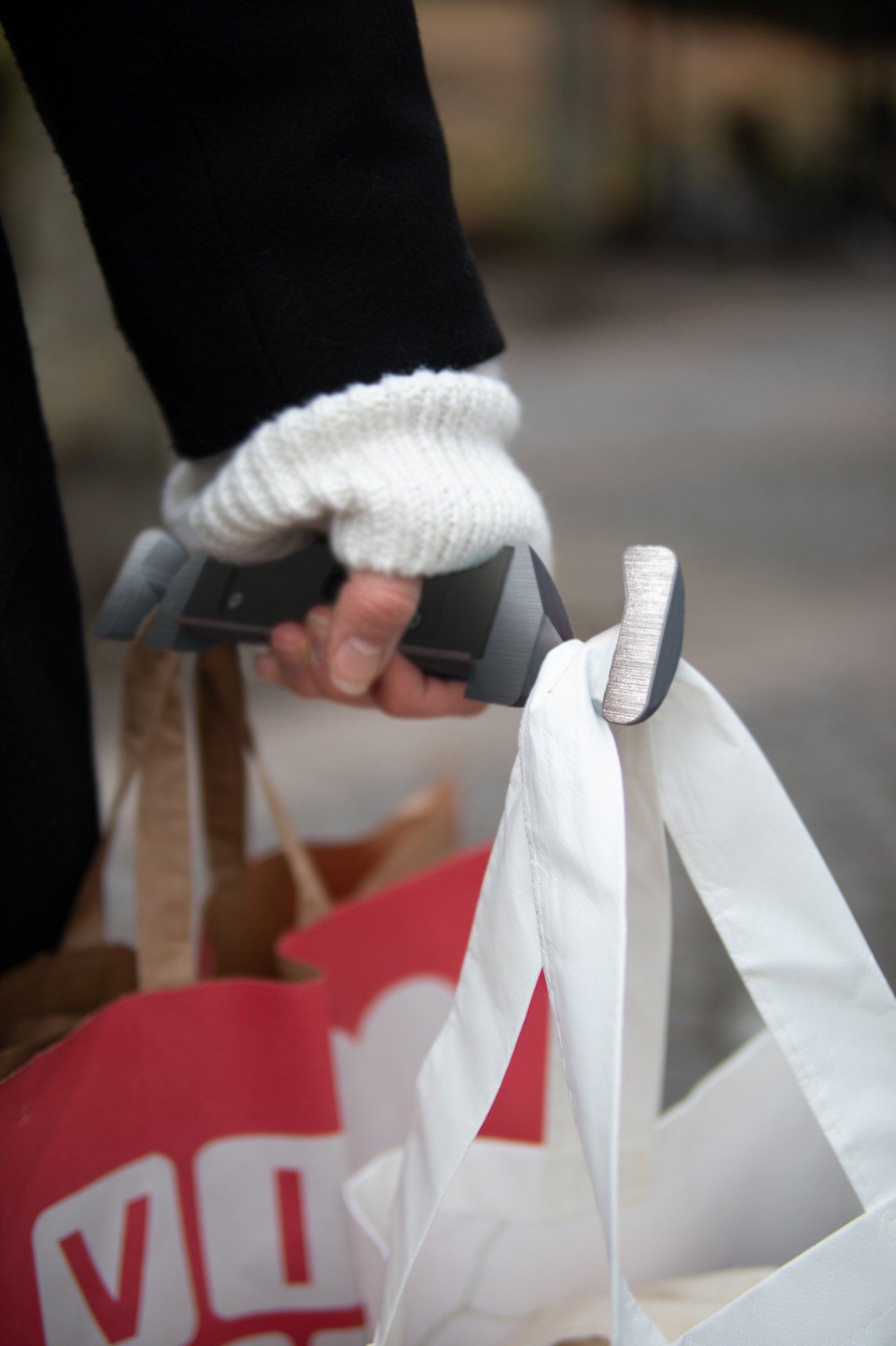 Its main feature is a comfortable handle that allows users to hang several bags and carry them with less strain. Additional fold-out functions include a hook, a bike-mounting option and the ability to split the product into two separate handles for balanced carrying. The product also comes with an insulated bag for transporting chilled or frozen goods.