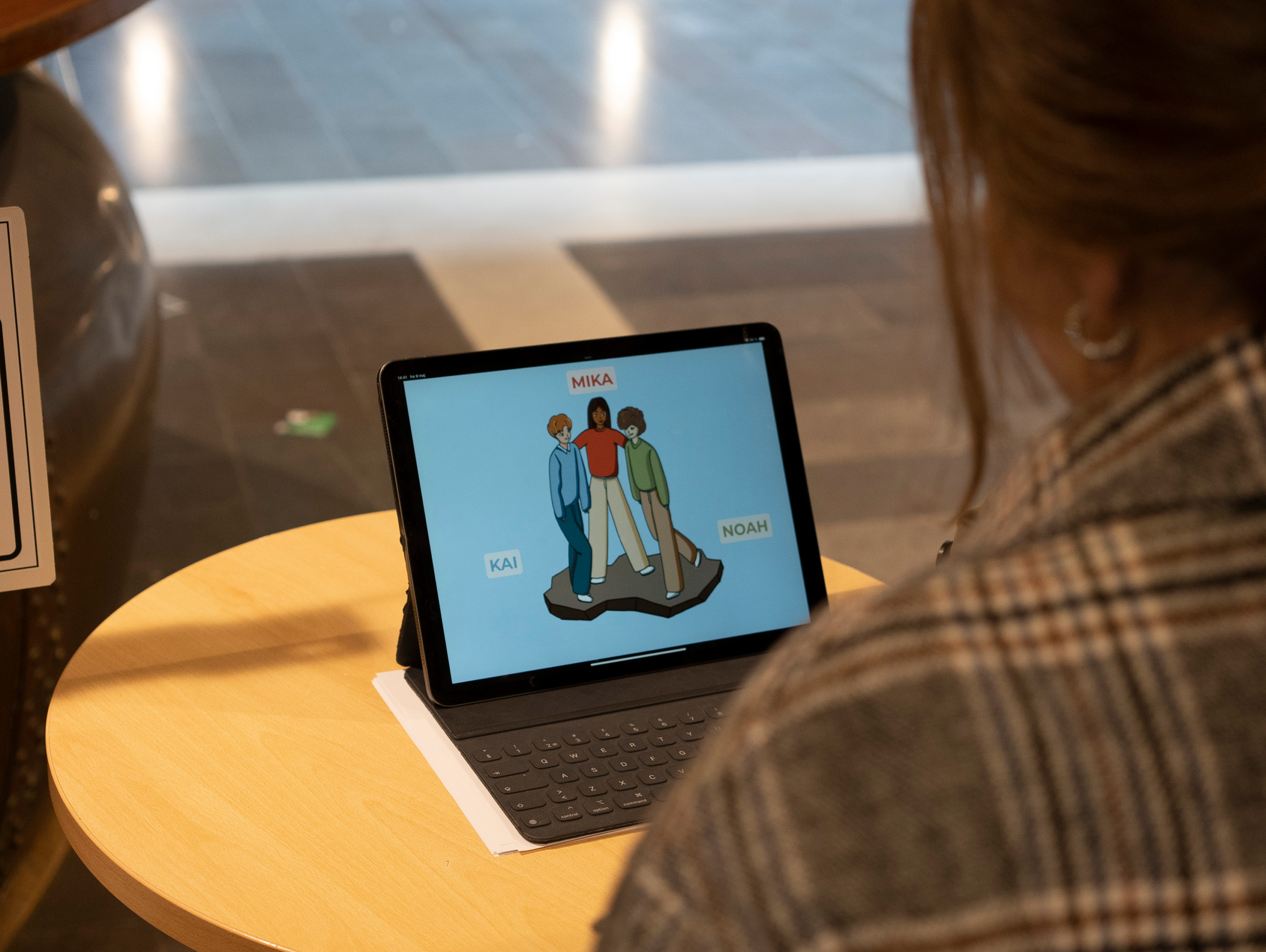 • Audiovisual slideshow, to increase sensorial accessibility, visual memorability,  and distinguishment of characters.