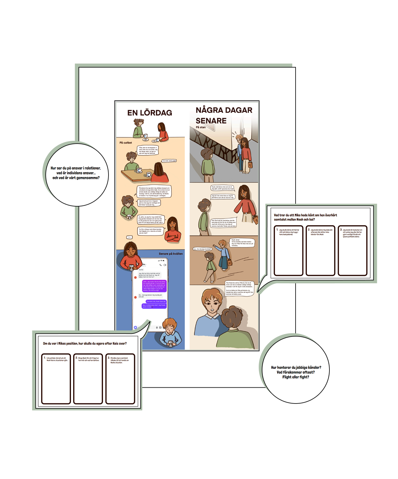 • Storyboard + reaction questions + discussion questions , to increase interactivity and immersion.